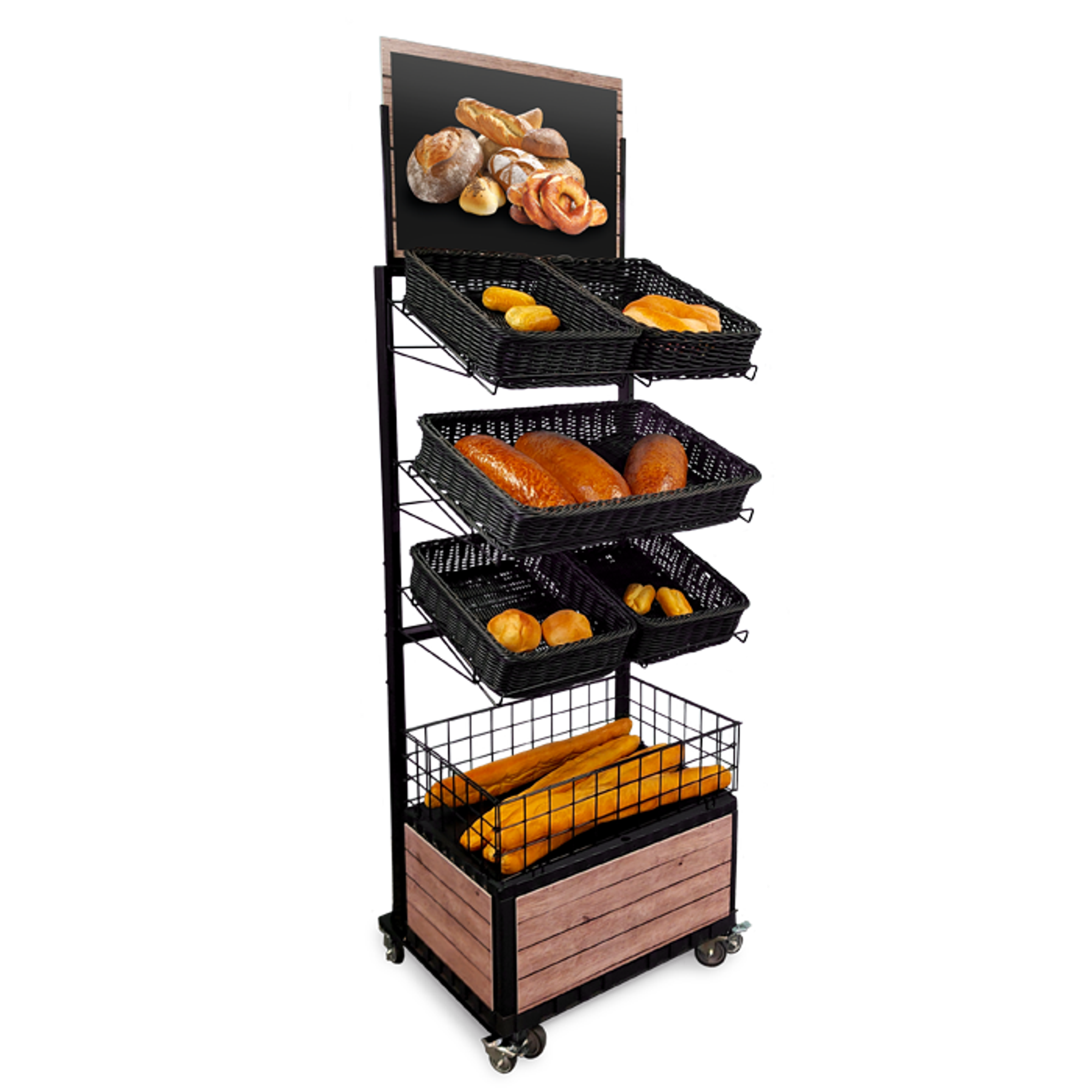 Jeder Korb ist leicht schräg angebracht, was eine optimale Sichtbarkeit und eine einfache Entnahme der Produkte ermöglich; perfekt, um die Kunden zum Zugreifen zu animieren.